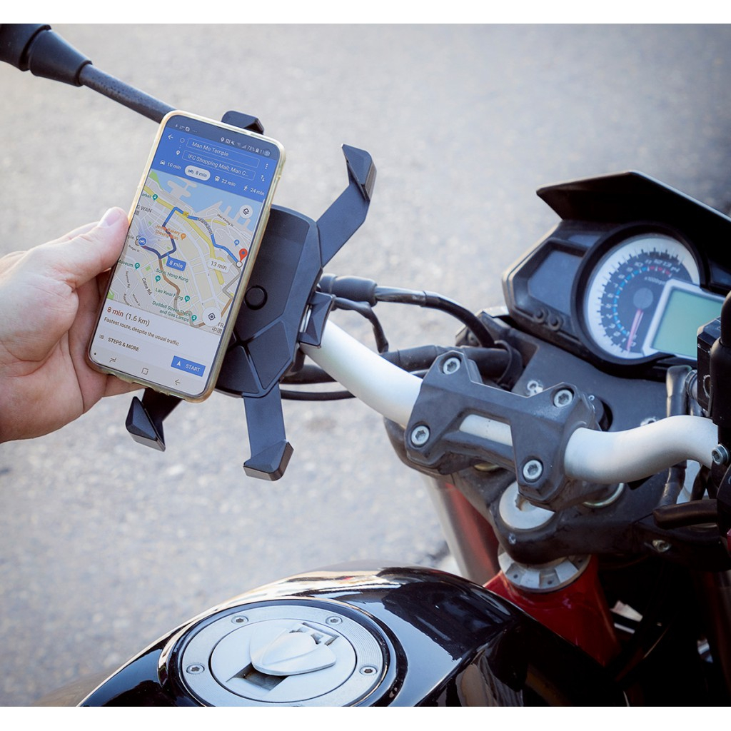 Inovator si functional - Un suport automat pentru smartphone care se instaleaza usor pe toate tipurile de ghidon pentru biciclete, motociclete, scutere, etc. Pentru a face acest lucru, include o clema detasabila care este plasata pe ghidon prin strangerea butonului filetat pentru o potrivire perfecta. Ofera o prindere ferma anti-vibratii, iar rotirea sa la 360º in mai multe pozitii permite orientarea orizontala sau verticala la unghiul dorit pentru o vizualizare optima.